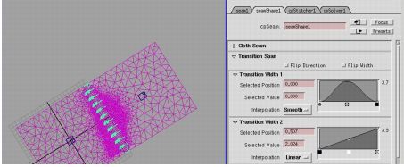 Control an editable graph which defines the profile of the transition region (that is, the area of high tesselation density) along the seam curve. This graph describes the profile in cloth-space units.
