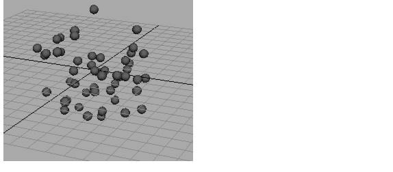 在以下步骤中,您将创建由 100 个随机定位的粒子所构成的粒子对象,且这些粒子显示为非常小的球体。您也会以动态方式对粒子添加属性。若要使用表达式为粒子上色,Maya 会要求您动态地添加相应的属性。