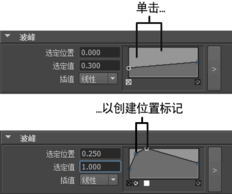 7. 通过调整“属性编辑器”(Attribute Editor)中的“波峰”(Wave Peaking)图,使波浪顶部形成浪尖。