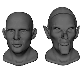 在本课程中,您将使用变换工具雕刻网格,从而将现有多边形头部模型更改为 goblin。