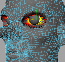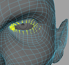 6. 启用“软选择”(Soft Select)后,请按“B”键并拖动鼠标调整衰减区域,以便仅覆盖眼窝区域。