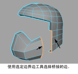 提示当使用选择边界边时,可以在桥接的一侧上,单击系列中的第一条边和最后一条边,则该工具将选择这两条边之间的边。