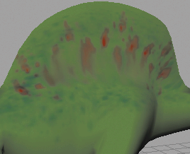 在接下来的步骤中,将对恐龙上的绘制进行涂抹和模糊。使用“Paint Effects”笔刷进行涂抹,可沿笔划路径将相邻颜色混合到一起。模糊通过平均化相邻颜色的颜色值,软化相邻颜色的边。