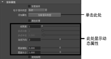 若要最大化显示粒子渲染类型的多功能性,需要将内置的动态属性添加到粒子对象中。将某个动态属性添加到对象中时,该属性将显示在选定对象的中。