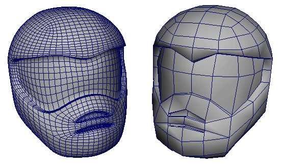 在渲染多边形网格时,其边可以设定为显示为硬边或平滑边。因此,多边形可以轻松地表示平面以及曲线式 3D 形状。在使用多边形建模时将连续使用这些组件类型。