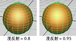 在实际使用中,“漫反射”(Diffuse)设置会使曲面看起来更亮。漫反射这一名称源自一个物理特性,该特性用于描述光在照射到曲面后的扩散方式。具有高漫反射特性的曲面会散射照射在其上的光,从而使对象看起来更亮。