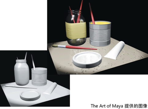 编辑与着色材质关联的材质属性会影响它们在渲染图像中的显示。使用该方法,Maya 可以提供相关的选项,让您创建与真实世界中显示的相同图像或想象中的图像。