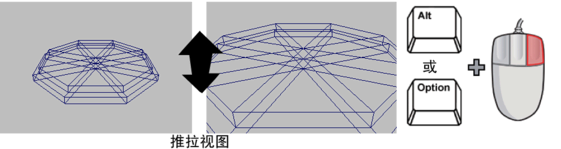 的名称源于影视制作,因为在影视制作过程中,安装在轮式三轴架上的摄影机会通过靠近或远离场景的移动方式进行近景或远景的拍摄。在 Maya 中,通过推拉能够以特写或远景方式查看场景中的项。