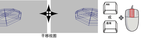 - 在按住鼠标中键的同时按 Alt 键(Windows 和 Linux)或 Option 键 (Mac OS X),然后向任意方向拖动鼠标。