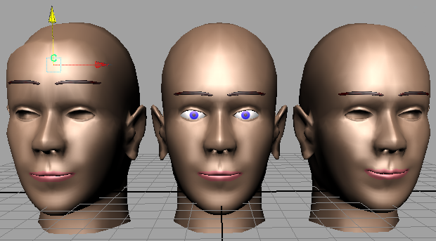 In the next steps, you duplicate the face again and reshape the duplicate into a new facial expression. You then add the new face to the blend shape node to create another slider in the Blend Shape Editor.