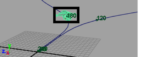 Next, you modify the tangents for keys 120 and 180 so the aircraft accelerates and decelerates near those points on the path curve.