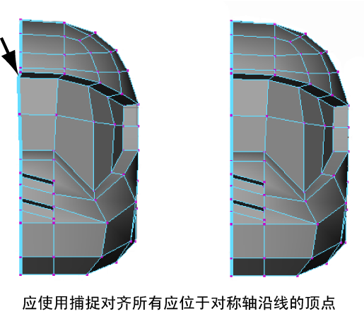 如果网格上的任何顶点伸出 Y 轴,则需要结合使用“移动工具”(Move Tool)和“捕捉到栅格”(Snap to grids)功能将这些顶点捕捉到 Y 轴。