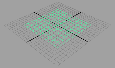 Maya 会创建一个平面基本体,然后将其放置在原点。该平面的尺寸是 15 个单位 × 15 个单位,沿每侧有 10 个细分。