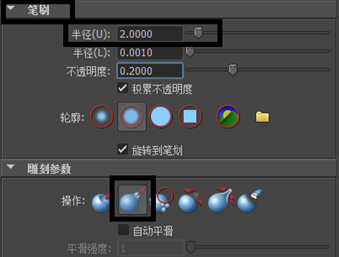 - 在区域中,将设定为 2。在区域中,将雕刻设定为。
