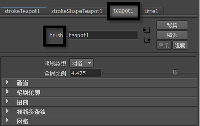 默认情况下,原始笔刷笔划已通过构建历史链接到新的多边形曲面。如果修改原始笔刷笔划属性,只要构建历史链接存在,多边形曲面就会更新。通过该构建历史链接,能够以各种方式轻松修改多边形网格曲面。可以使用属性编辑器来修改笔刷笔划属性。
