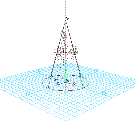 这将创建一个圆锥体“体积轴”(Volume Axis)场,该场会影响进入或存在于其体积内的粒子运动。粒子相对于体积内的中心轴移动。对于圆锥体体积形状,中心轴是正 Y 轴: