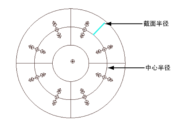 “绕轴”(Around Axis)值为 2 会使粒子绕中心轴旋转。对于圆环,中心轴是圆环实心部分中心内的环形。