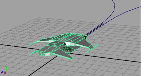 开始时间和结束时间用于设定飞机沿路径曲线移动的持续时间(240 - 60 = 180 帧)。开始和结束时间显示在曲线的末端。
