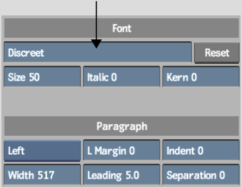 You specify the default font using the TextDefaultFont token in the init.cfg configuration file. See the Autodesk Visual Effects and Finishing Configuration File Reference Guide. Also, you can install additional fonts for use in the Text module. See Installing Fonts.