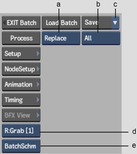 (a) Load Batch box  (b) Save box (c) Save dropdown list (d) Reference box (e) View box