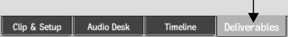 Most of the controls in the Deliverables menu are common to various parts of the software, and their functions are explained in their respective sections. The following does not describe how to use the controls, but rather how to manage the results using Deliverables and output them to tape in real time. The settings you create in the Deliverables menu can be previewed in the Player and are applied in real time during clip output.