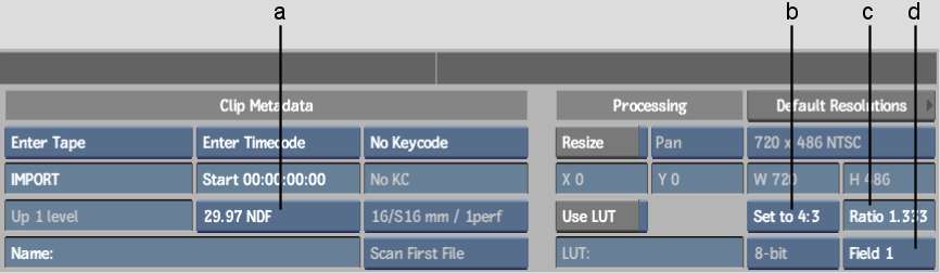 (a) Framerate box (b) Aspect Ratio box (c) Aspect Ratio field (d) Field Dominance box