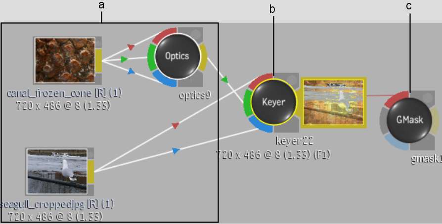 You can select a single node or a combination of nodes. A branch is the structure of a parent node and one or more child objects. A tree is the structure of all connected clips and nodes.
