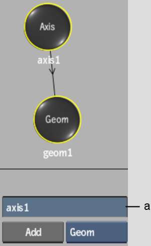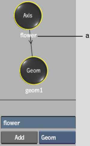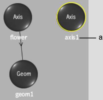 Newly added nodes take the next lowest available number. In the previous example, axis1 was renamed flower. In the following example, another Axis node is added to the schematic. It is automatically named axis1.