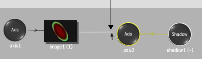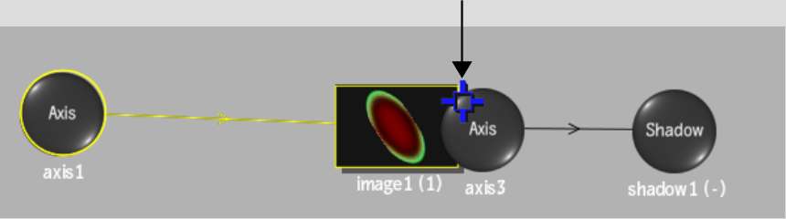 In the following Action scene-based schematic, the selected node (axis3) is the parent of shadow1. Changes made to axis3 are passed down to its child node—shadow1.