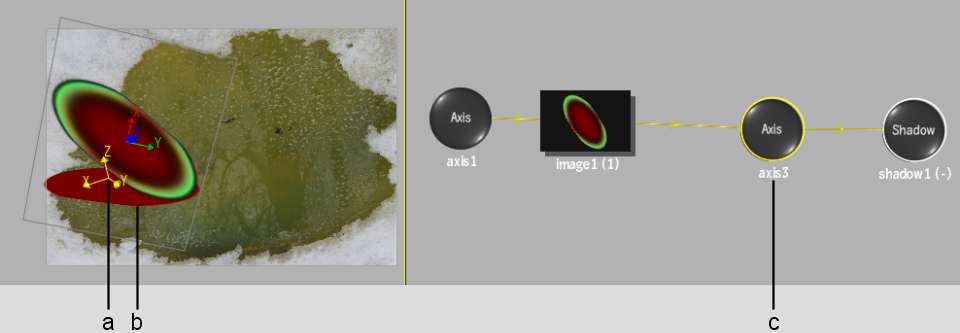(a) Axis of shadow corresponds to axis3 node (b) Shadow corresponds to shadow1 node (c)  axis3—the parent of shadow1—is used to change the shadow’s position