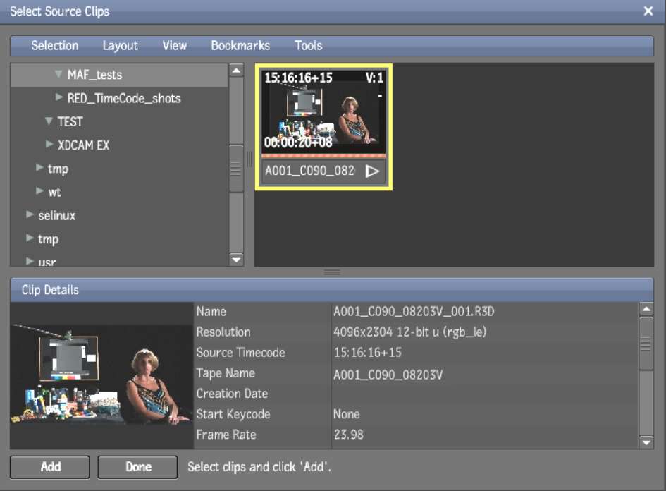 4. Select one or more clips and click Add. When you are finished, click Done.