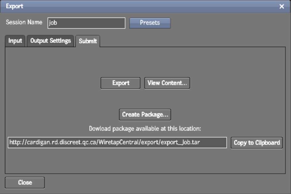 9. Click Create Package to add the clip, or clips, to a TAR file.