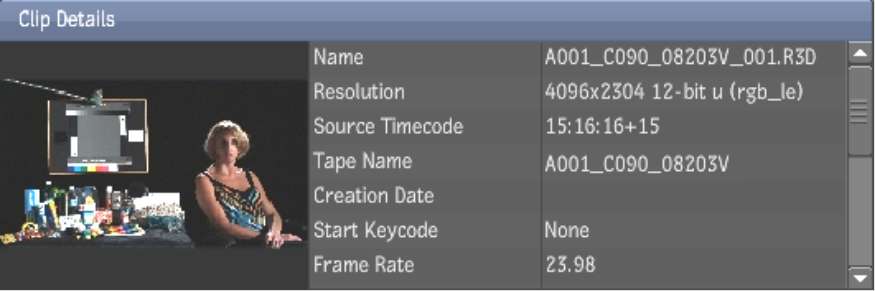 When you browse, the information for the node that you are currently on, whether server, volume, project, library, or clip, is presented in the Details areas. This information persists until you select another node.
