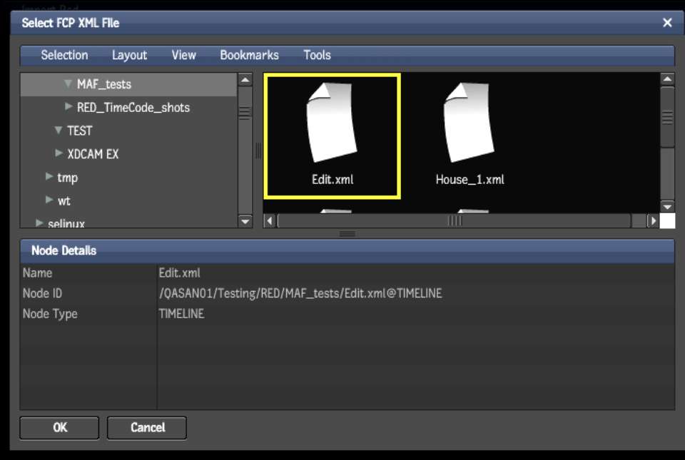 FCP XML file to be imported, and select the file.