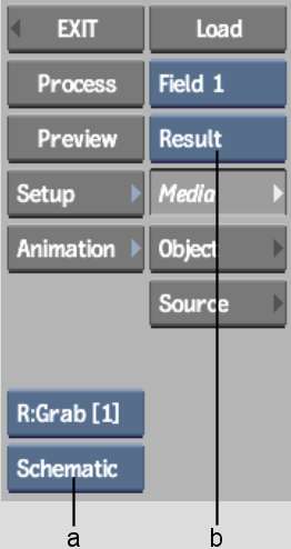 A subset of the media views is available from the Process View box. Select an option to specify the view displayed when you process a scene in Action. For example, the View box may be set to Schematic, but while you process intermediate results in Action, you would like to view the scene from the camera's view. In this case, you can select Camera from the Process View box, and then click Process.