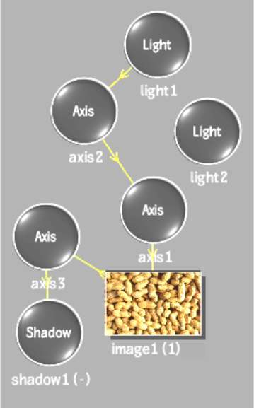 Objects that support multiple selection and changing of field settings are axes, images, shadows, and lights. For example, in the following schematic, you can select all of the nodes.