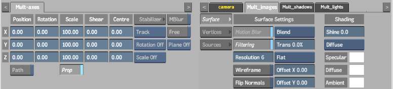 In the Object menu, you can relatively change any of the available fields. For example, if the X Position for Axis1 and Axis2 was originally 100, and for Axis3 was 200, and you drag the X Position slider under the Mult-axes tab to 50, Axis1 and Axis2 are now set to 150 and Axis3 is set to 250.