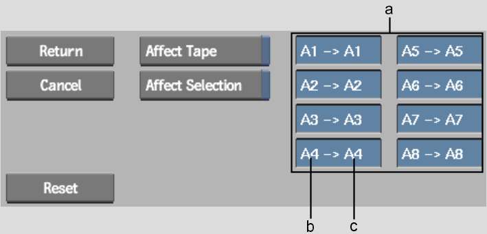 (a) Audio Patch boxes  (b) Source audio track  (c) Destination audio track