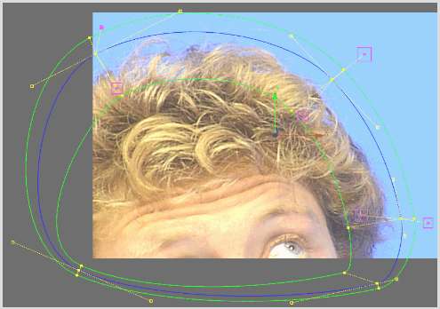 and two softness borders (the green lines) are added to the mask.