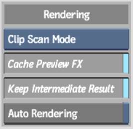 Auto Rendering buttonUse the Auto Rendering option to enable or disable the auto rendering of the background clip when you enter the Axis, Wipe, Colour Corrector, or Sparks Editor. If you want the background to render automatically when you enter these editors, enable Auto Render. If you do not want the background to render automatically, disable Auto Render.