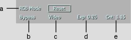 (a) Preset Mode (b) Bypass/Active Mode (c) Image Data Type d) Exposure (e) Contrast