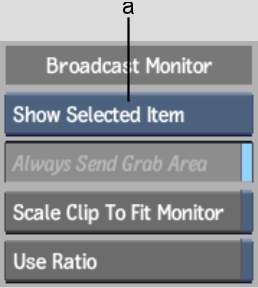 Scale Clip To Fit Monitor buttonEnable to resize the clip to fit the broadcast monitor. This button is active when the Show Selected Item option is selected.