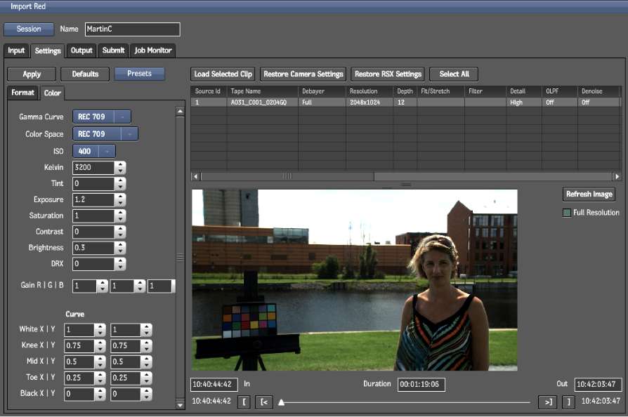 The Color Tab displays the settings for the clip metadata, as set in the camera. Alter these settings carefully, since overiding some values may produce unexpected results.