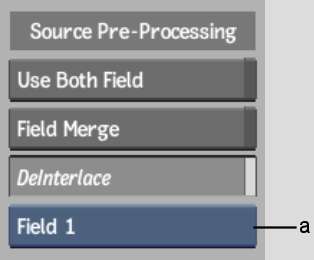 Source Fields Toggle buttonSelect Field 1 or Field 2 when processing the resizing on only one field of an interlaced clip. Active when Deinterlace is enabled.