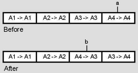The following figure illustrates patching source track A3 to record track A4.