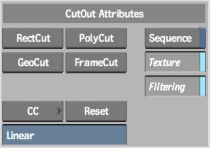 Four commands are used to create cutouts: FrameCut, RectCut, PolyCut, and GeoCut. FrameCut, RectCut, and PolyCut create cutouts using shapes you define in the CutOut menu. Geocut creates cutouts using objects you select in the Graphics menu.