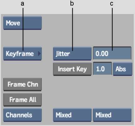 Use the Jitter option to remove the jitter from a clip while retaining the overall motion. The Stabilizer calculates the difference between an average applied to the channel by using the current Over value and the original tracking data. Applying this curve leaves only the jitter values as keyframes. Copying these curves can also be useful if you want to extract the jitter values to apply to another clip.