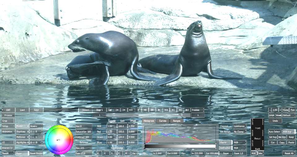 The Overlay user interface is specific to the Colour Corrector and Colour Warper. Its controls are identical to those on the regular user interface except that they are transparent and appear on top of the image. This allows you a greater viewing area when working with large or zoomed-in images.