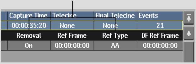Columns indicate whether 2:3 removal is enabled, and, if it is, the reference frame and type for the 2:3 sequence on the tape.