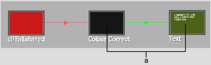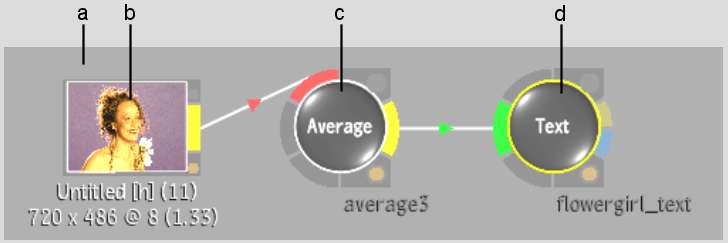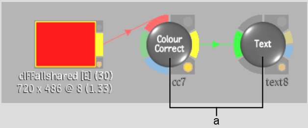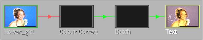 (a) Clip history in Inferno, Flame, and Flint (b) Clip with colour correction, supported in all products (c) Batch module operations supported in Inferno, Flame, and Flint only (d) Text supported in all products
